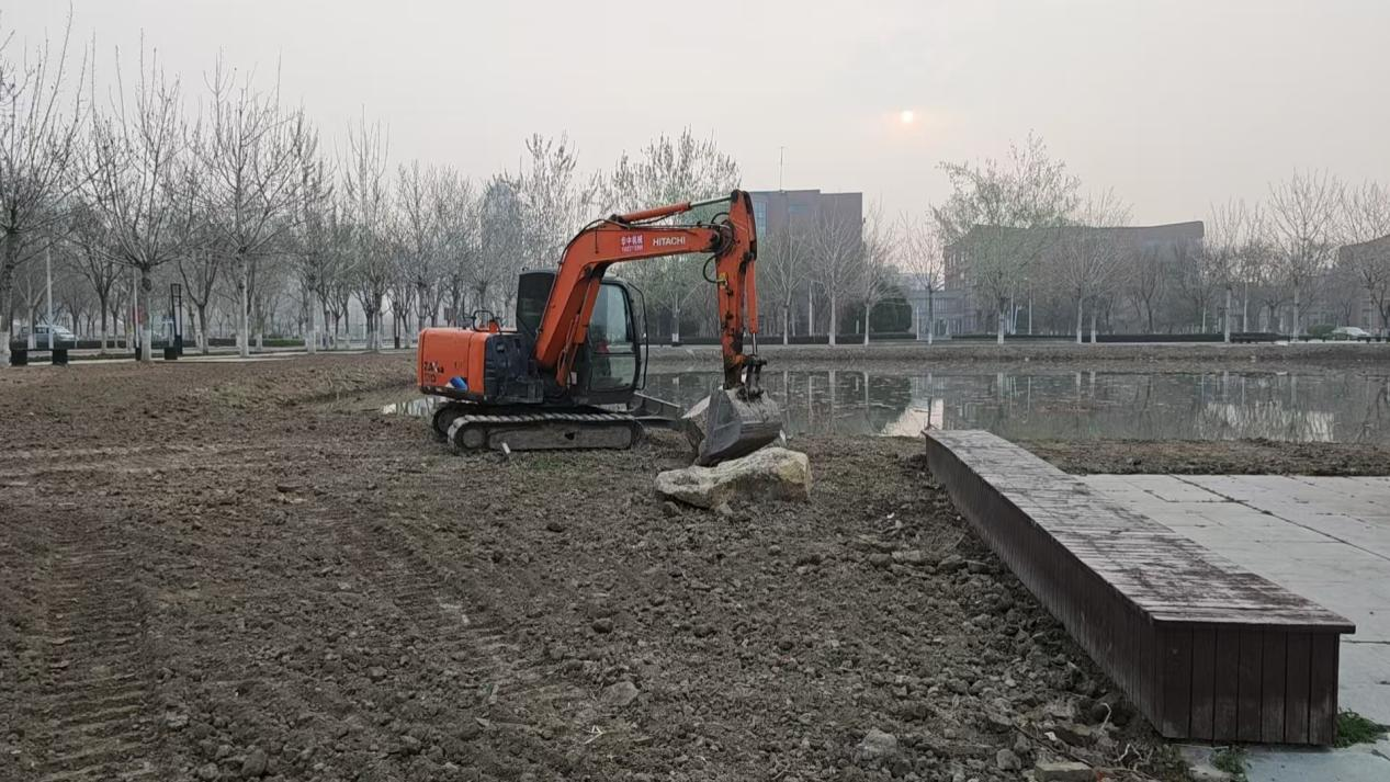 此次环境提升工程聚焦校园重点区域,精心组织、协同推进。在荷花池周边,施工团队正有序开展环境升级工作,通过优化景观布局、完善配套设施,着力打造兼具生态性与人文美的校园水景空间。与此同时,日新道道路两侧及北部宿舍区也迎来绿化焕新,工人们正抢抓时令,换植优质海棠树。一株株新栽的海棠迎风而立,待来日花开似锦,将为校园增添一道亮丽的风景线。