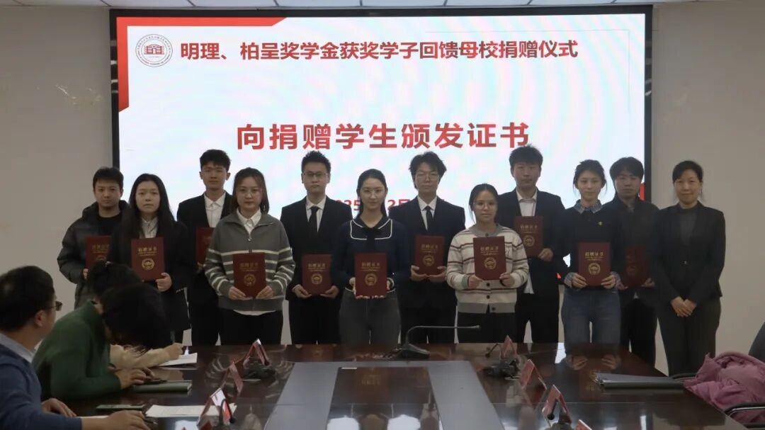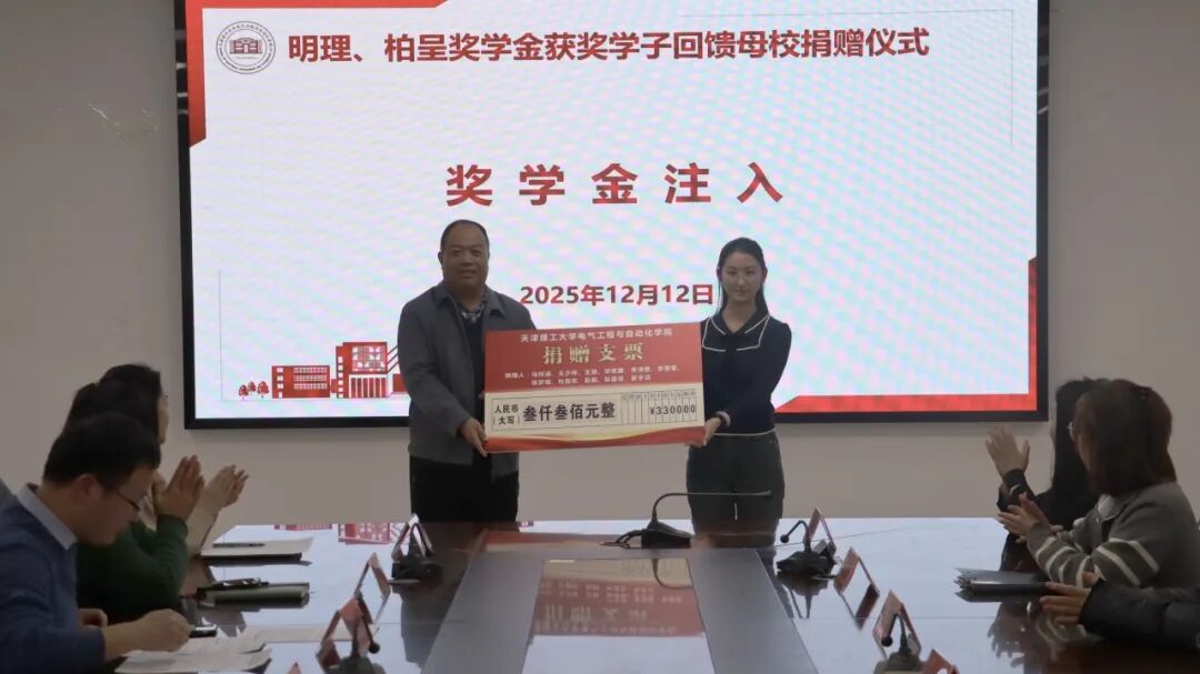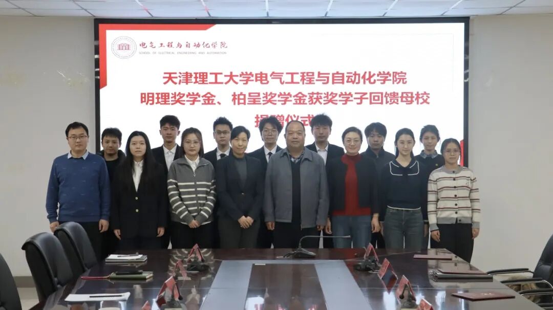 冬日暖阳照天理,学子情深馈母校。近日,电气工程与自动化学院在29号楼454A会议室隆重举行明理奖学金、柏呈奖学金获奖学子回馈母校捐赠仪式。校友工作办公室主任王树春、副主任于洁,学院党委书记张靖、党委副书记杨力波出席仪式,2025年“明理奖学金”获得者翟宇洁、“柏呈奖学金”全体获奖学生及本硕学生代表共计40余人参加。