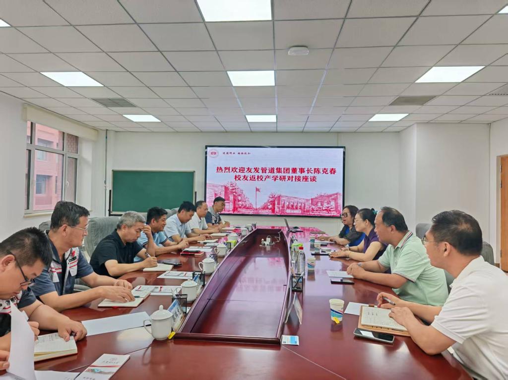 7月24日,天津友发管道集团董事长陈克春校友一行到访天津理工大学电气工程与自动化学院,双方围绕产学研合作、人才培养与输送等话题展开深入交流,共绘合作蓝图。天津理工大学发展战略研究中心主任王树春,先进技术研究院副院长、技术转移中心副主任李大华,电气工程与自动化学院党委书记张靖参与对接座谈。